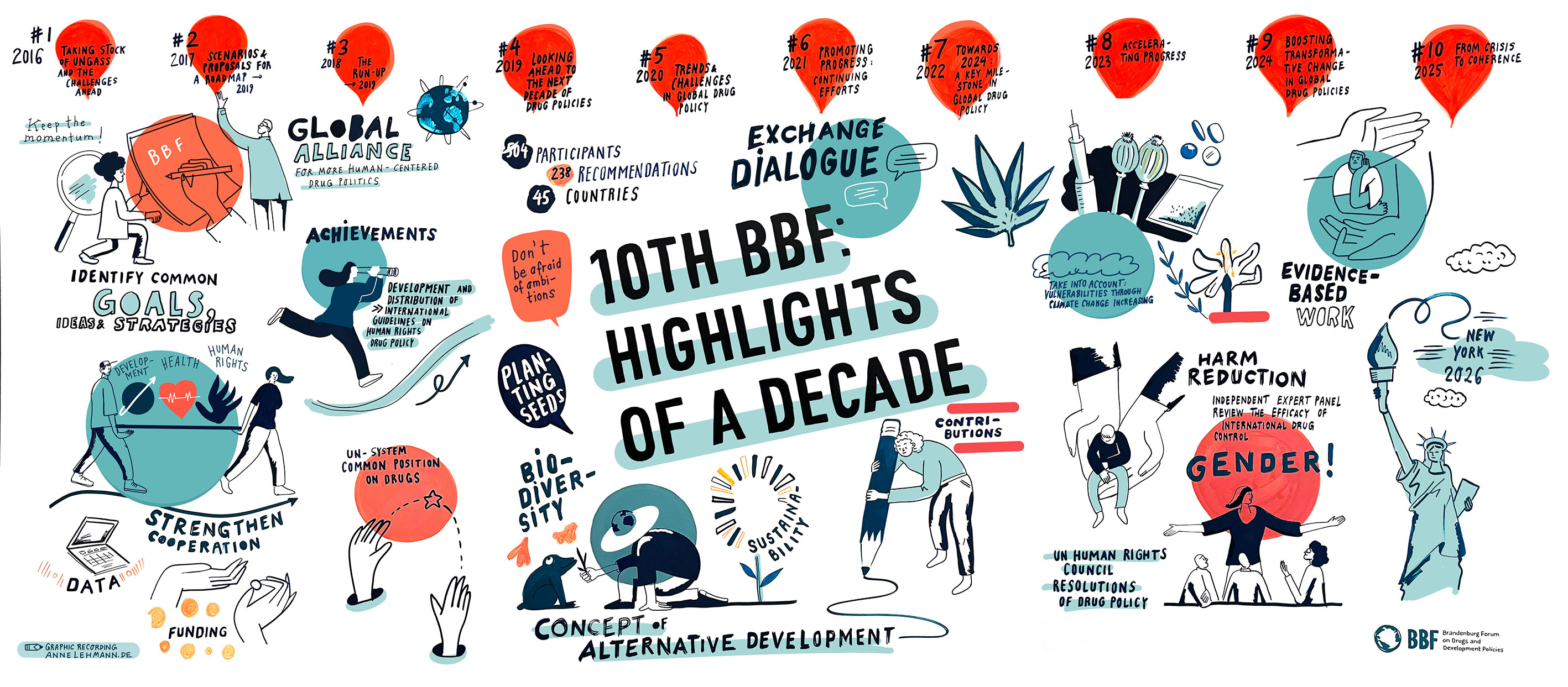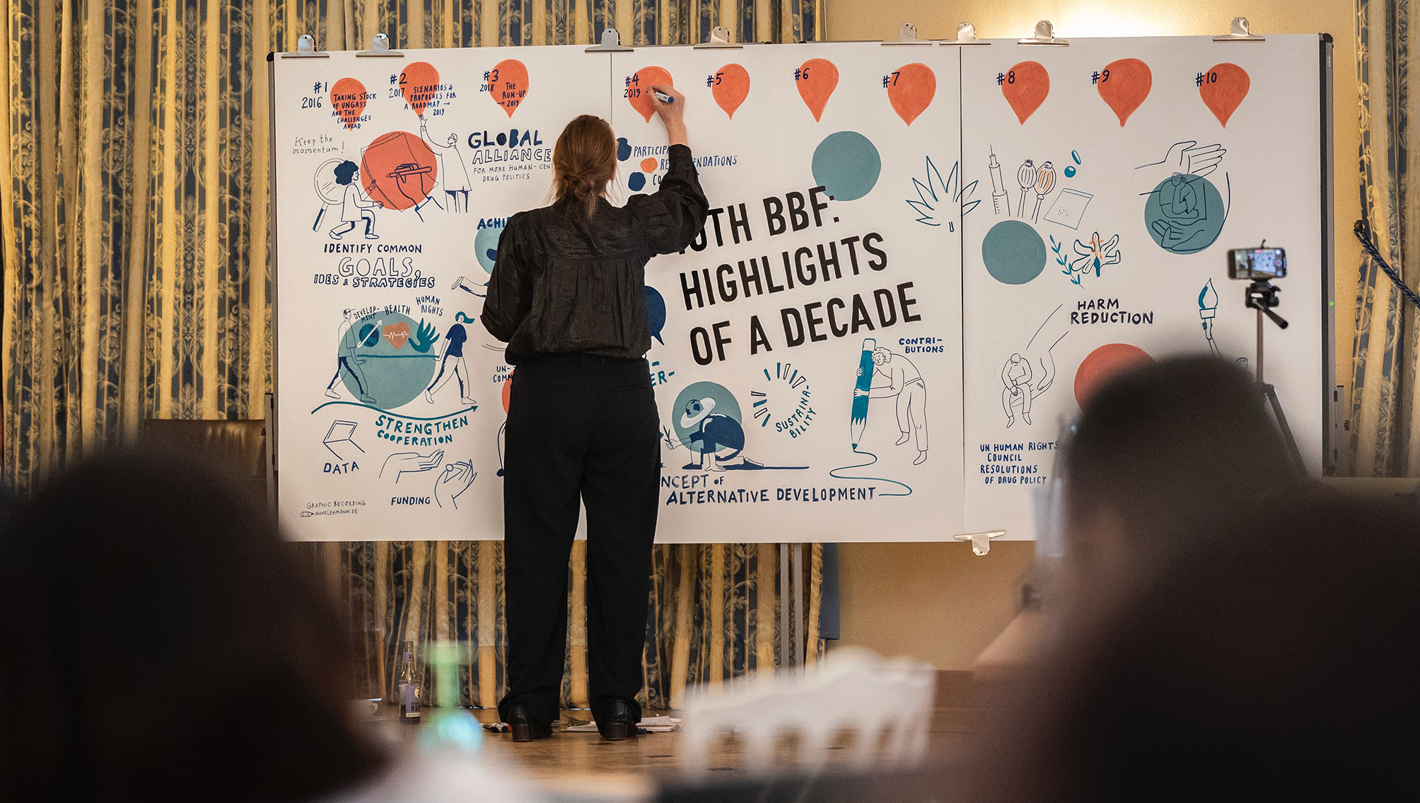 Meine Aufgabe war die Live-Visualisierung der zentralen Inhalte, Diskussionen und Ergebnisse des Jubiläumsforums sowie die visuelle Hervorhebung von Rückblicken und Erfolgen aus zehn Jahren